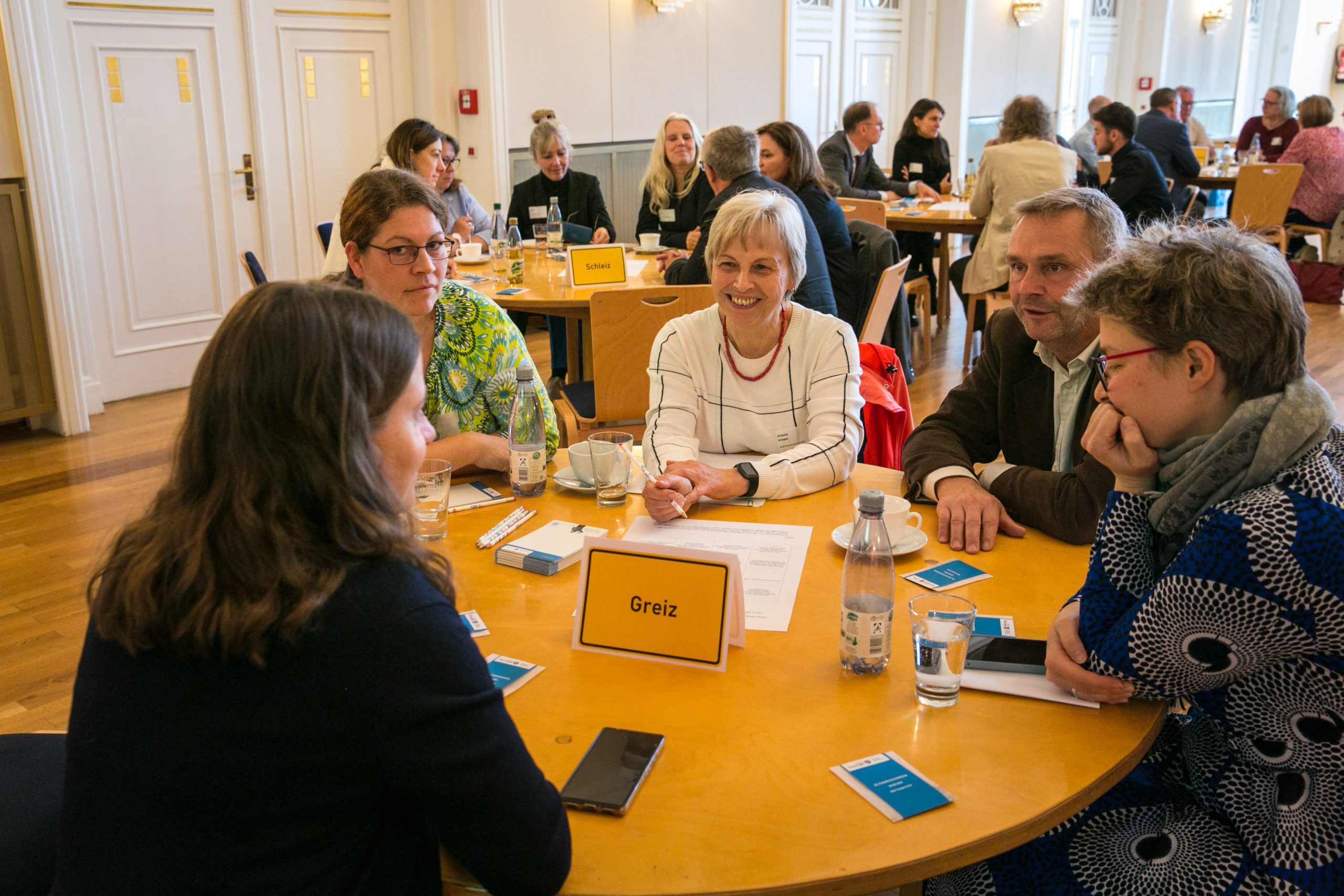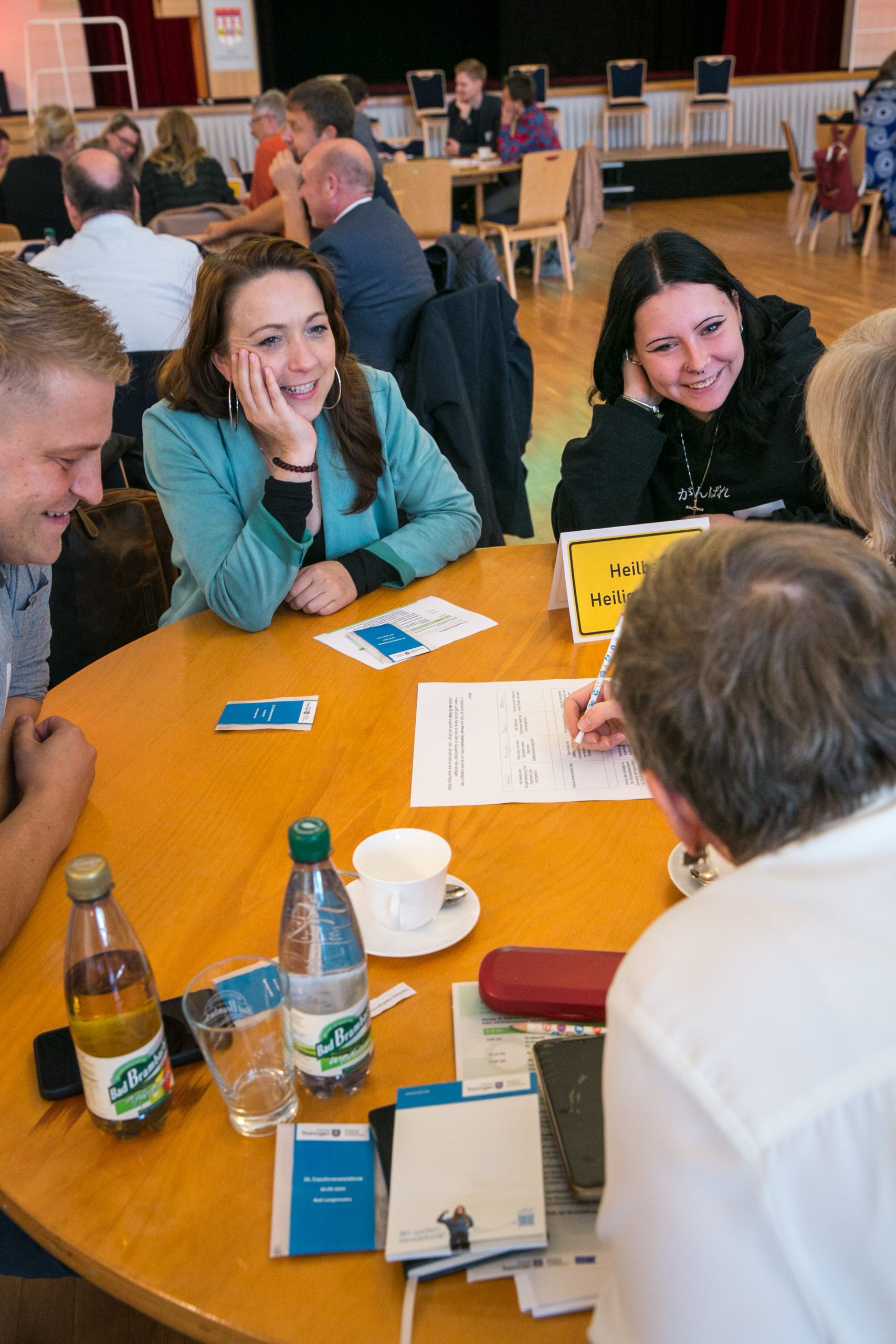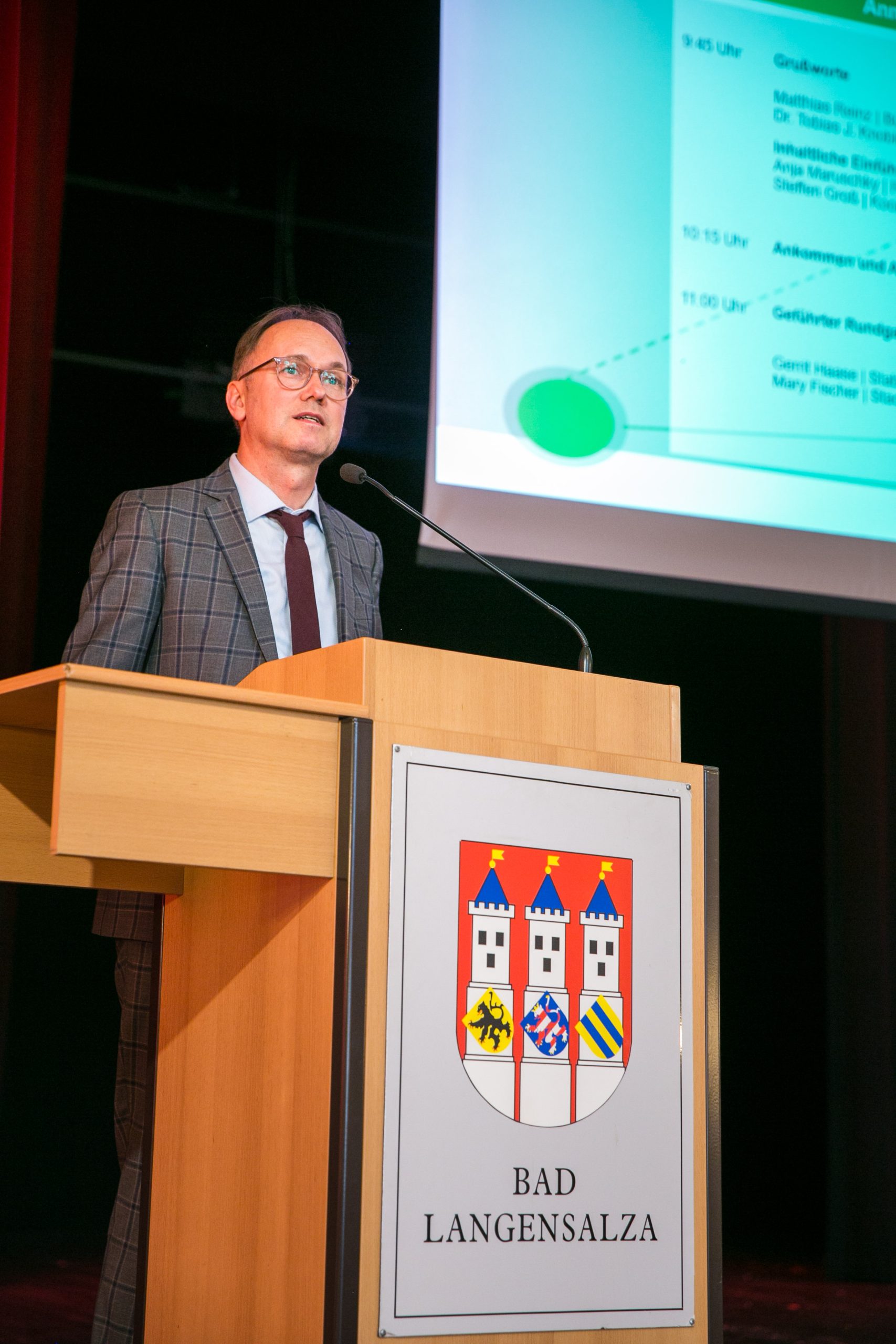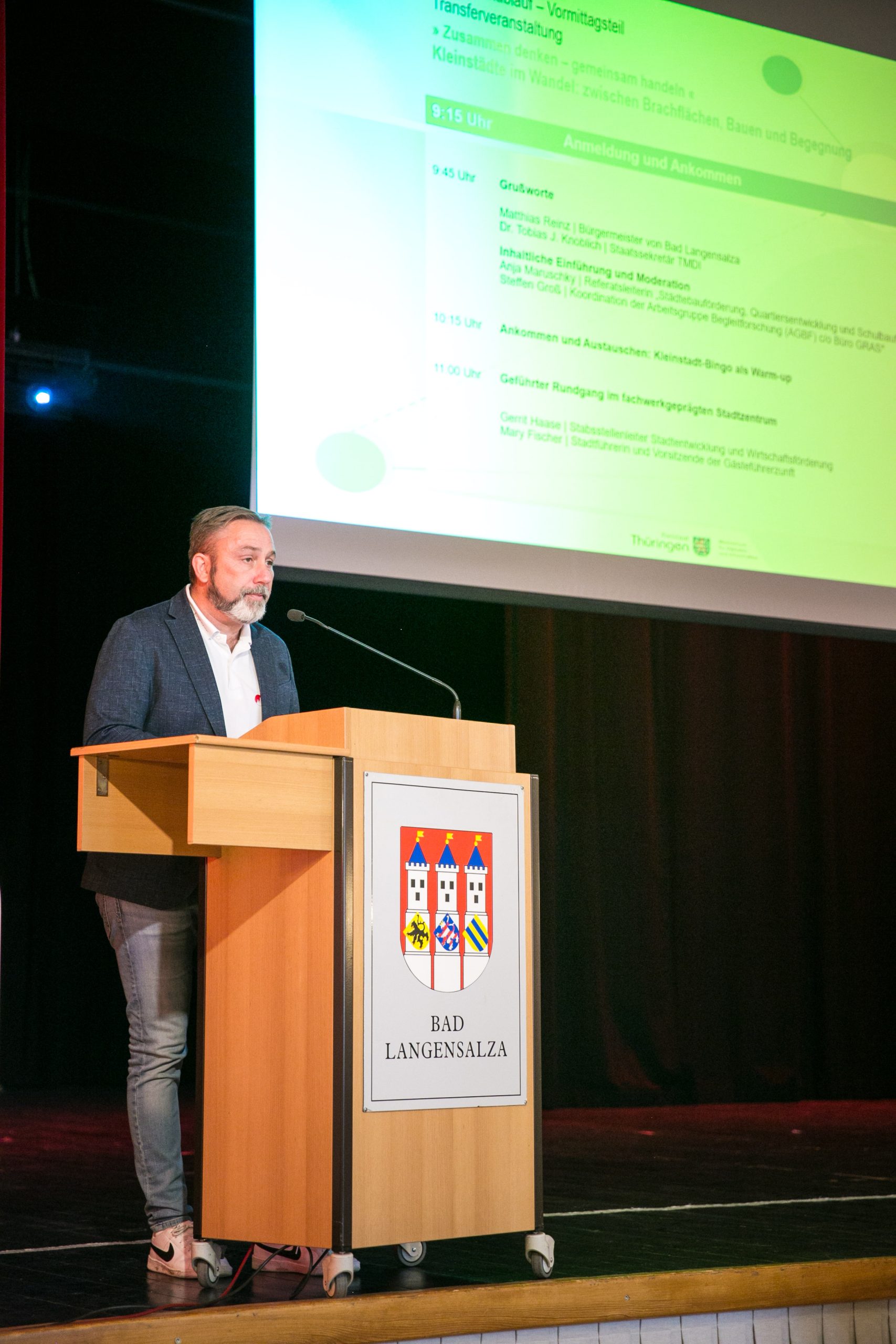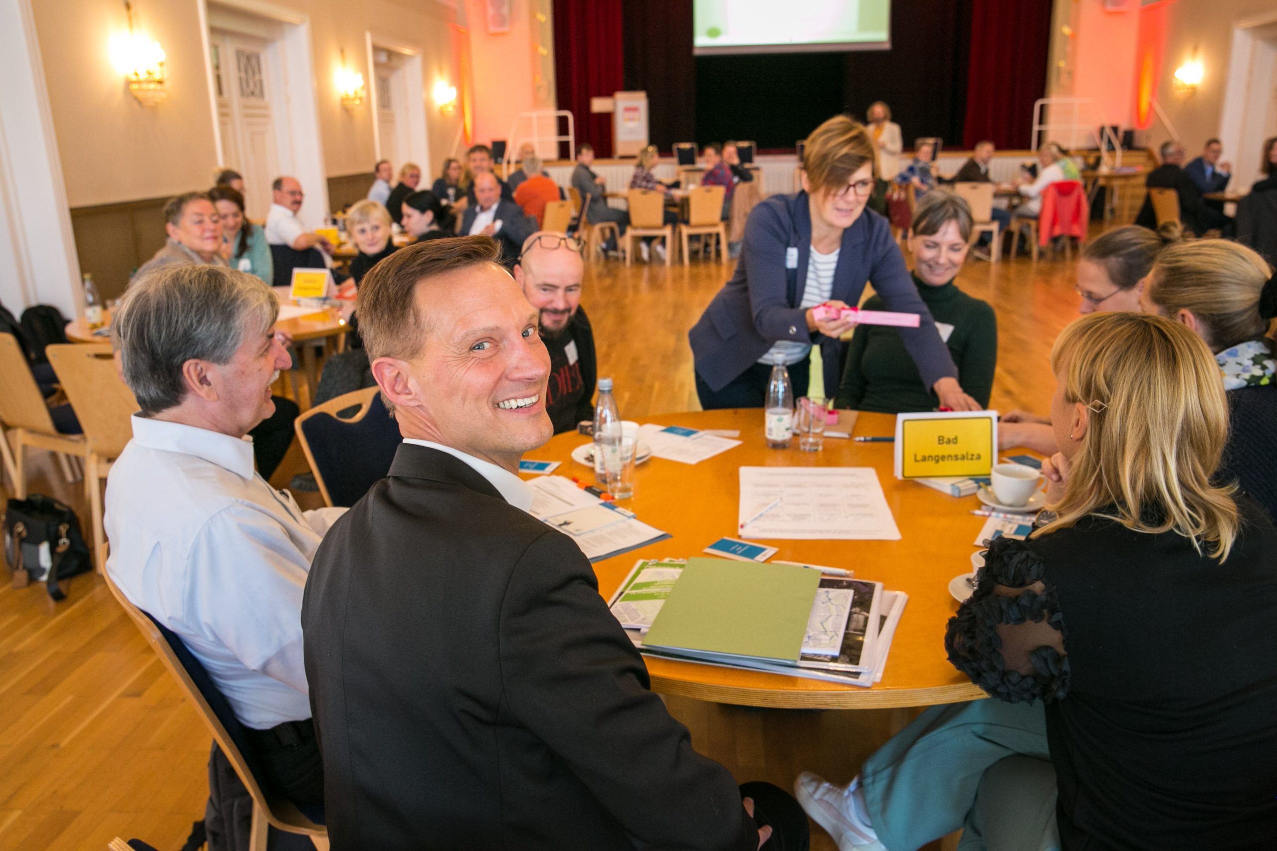 Bereits die Grußworte von Bürgermeister Matthias Reinz (Stadt Bad Langensalza) und Dr. Tobias J. Knoblich (Staatssekretär des Thüringer Ministeriums für Digitales und Infrastruktur) verdeutlichten, dass auch künftig ein langer Atem für die Anpassungen an den demografischen und strukturellen sowie den Klimawandel benötigt wird. Gleiches gilt für die Attraktivierung von Kleinstädten, die als Wohnstandorte nachgefragte sind. Aufgrund des Gastbeitrages der Kleinstadt Akademie fand die Veranstaltung überregionale Beachtung, unter anderem auch aus Hessen, Sachsen, Sachsen-Anhalt und Brandenburg. „Stadtbingo“ hieß diesmal das Kennenlernspiel mit dem Erfahrungsaustausch in Kleingruppen. In diesem Rahmen lernten sich die Tischbesetzungen auch über eigens berichtete Projekte untereinander kennen.