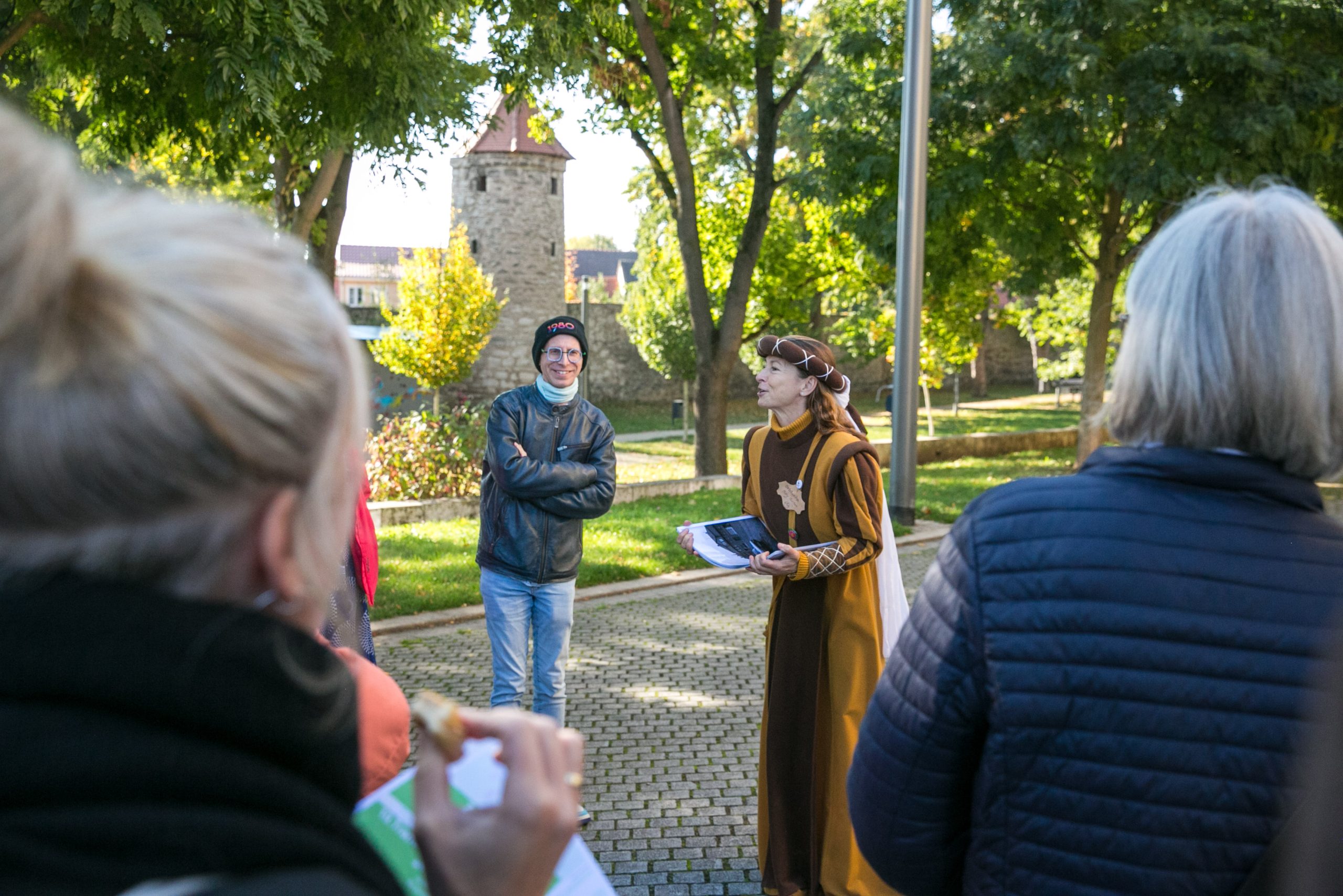 Ein geführter Stadtrundgang von Mary Fischer (Stadtführerin) und Gerrit Haase (Stabsstellenleiter Stadtentwicklung und Wirtschaftsförderung der Stadt Bad Langensalza), bot den Teilnehmern wertvolle Einblicke in erfolgreiche Projekte und die Herausforderungen, die bei der Stadtentwicklung überwunden wurden. Besonders auffällig waren für viele Besucher die geringe Leerstandsquote und die zahlreichen großzügigen Grünflächen von hoher Qualität. Dafür wurden eine Vielzahl an altindustriellen Brachflächen bereits seit den 1990er Jahren Stück für Stück bzw. in nunmehr über 30 Jahren geförderter Stadtentwicklung einer zukunftsfähigen Nutzung zugeführt.